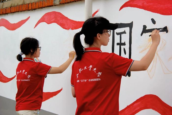 11日,實踐團隊的核心工作圍繞為小李村的孤獨癥兒童創造多元化的康復訓練和生活體驗場景。在志愿者協助下,孩子們參與了墻面圖案繪制和黨建宣傳標語的書寫工作。同時,部分團隊成員在田間協助清理西瓜田標牌及清除雜草。