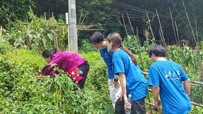 實踐隊跟隨王敏負責人調研老舊房屋旁植被環境(通訊員史天姿供圖)