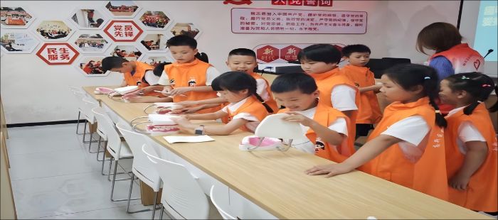 圍繞“挽救生命,穩定傷情”核心目標,志愿者帶領孩子們結對練習急救知識。課堂上,孩子們牢記報警110與急救120的用途,系統學習中暑、溺水、鼻出血等常見意外傷害的處理方法。通過紗布、繃帶模擬操作,大家掌握了傷口處理、環形包扎法及海姆立克法等實用技能,應急處置能力得到顯著提升,面對突發狀況時更添從容。