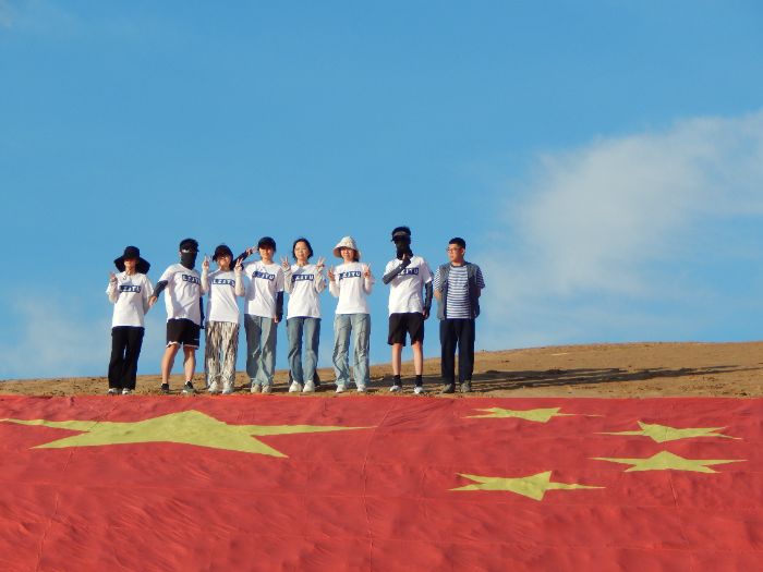 一場特別的“迎風”儀式在廣袤沙海與澄澈藍天的映襯下舉行。巨幅國旗迎風招展,獵獵作響,與青年學子們堅毅的身影交相輝映。這不僅是“民勤植夢,綠染沙荒”實踐團的集結號,更是他們向黃沙宣戰、向生態保護事業致敬的青春宣言,標志著此次意義深遠的治沙實踐正式拉開帷幕。