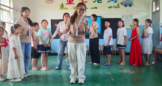 活動中,成員邸夢蕊為孩子們準備了一堂防溺水安全教育課。她耐心教授“防溺水手勢舞”,通過手勢和口訣,幫助大家掌握防溺水知識,課堂氣氛專注而活躍。課程間隙,一位學生家長特意送來清甜的西瓜。這份來自村民的意外心意,不僅為成員們解渴消暑,更讓大家真切感受到當地群眾的淳樸熱情和對支教活動的支持與感謝。