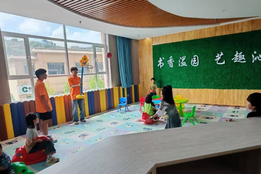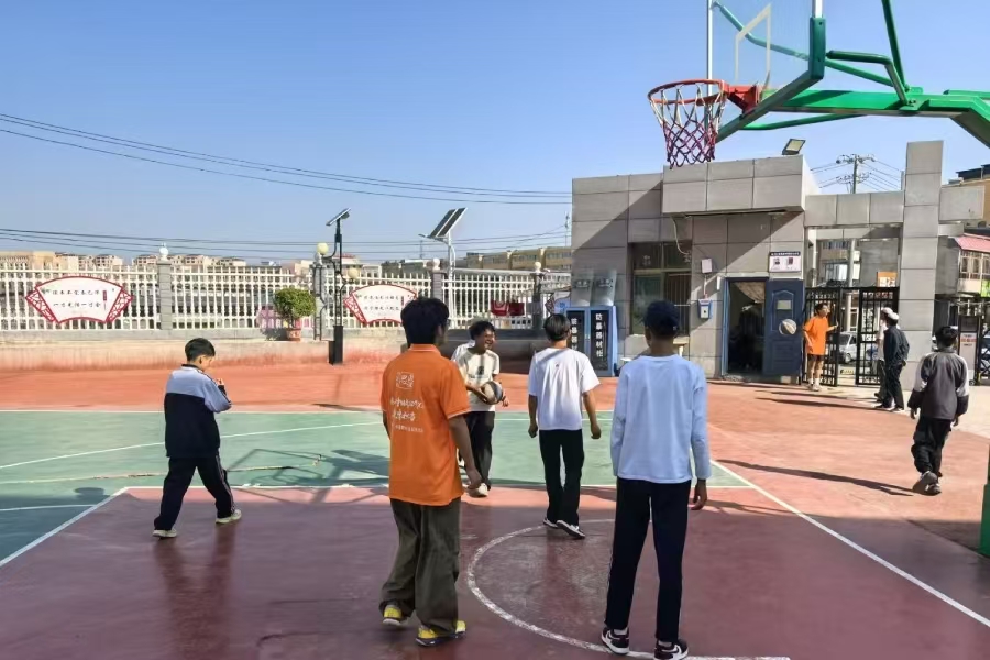 午后的籃球場化身活力課堂。作業輔導剛結束,志愿者便與學生組隊競技。瘦高男生屢次投籃失利,志愿者王磊貼身指導屈膝發力技巧:“再來!剛才只差毫厘!” 當籃球終于入網,男生躍起抱住王磊歡呼,笑聲震落樹梢陽光。場邊女生自發結成拉拉隊,奔跑中互相系緊松開的鞋帶——體育的魅力讓羞澀化作天然默契。指導教師李帆注視這一幕輕聲道:“所謂‘心火’,便是青春之光點燃青春希望。