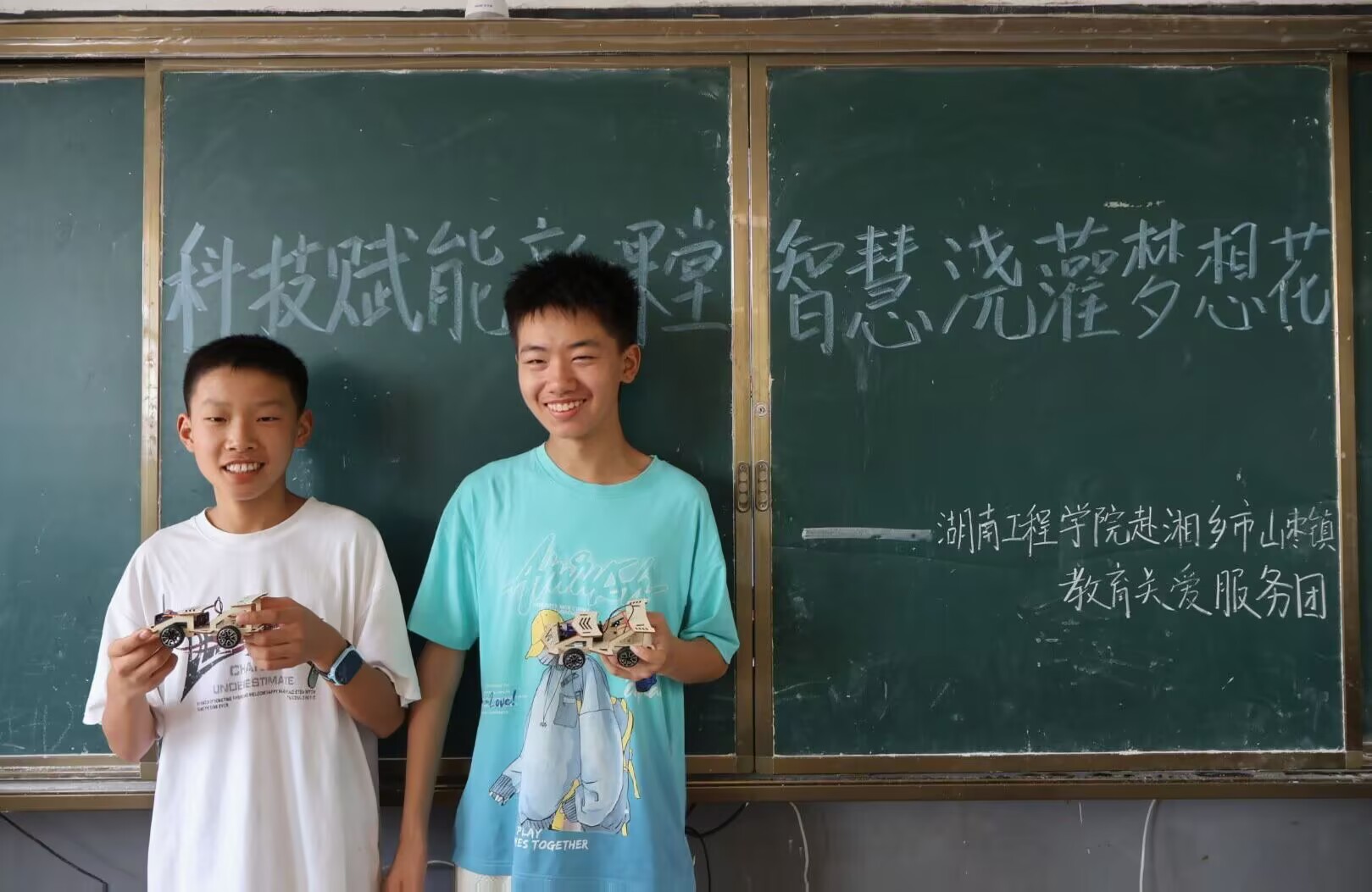 7月10日,湖南工程學院赴湘鄉市山棗鎮教育關愛服務團的志愿者們化身“科學引路人”,將精心設計的“流動實驗室”搬進鄉村,為當地36名中小學生帶來一場主題為“科技賦能新課堂”的沉浸式科學探索活動。