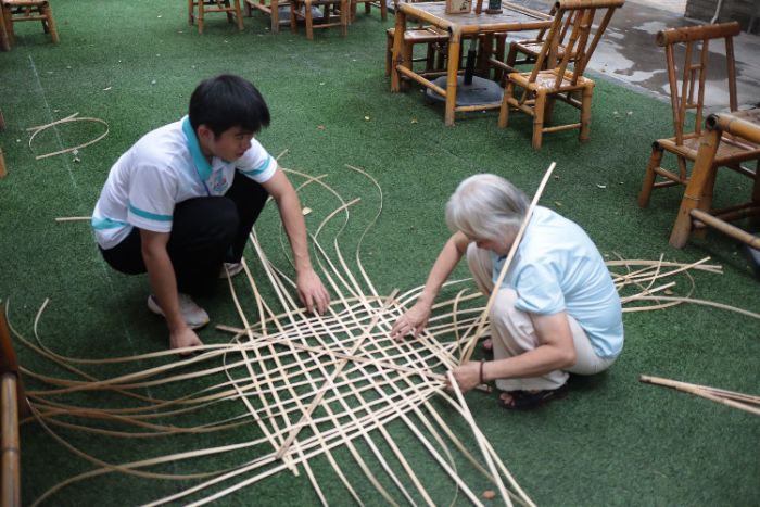 圖為突擊隊學習竹編 通訊員 曾婧怡 攝