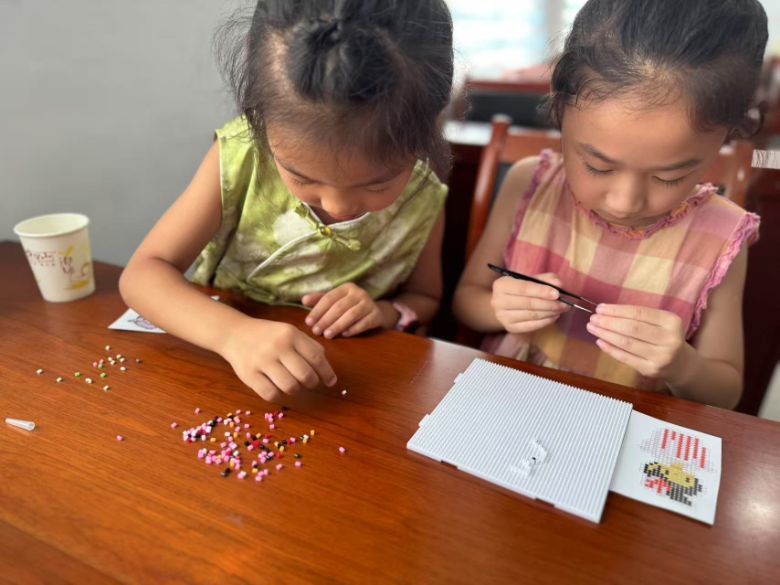 志愿者引導青少年自主創作拼豆作品,使他們在反復嘗試中提升專注力與審美能力。在“匠心成果展”上,數件融合傳統元素的拼豆作品集中亮相,孩子們通過作品展示,深化了對文化傳承與創新的理解。