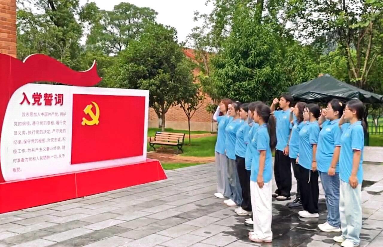 活動的高潮,是一場莊嚴肅穆的靈魂洗禮。面對鮮紅的黨旗,實踐團中的黨員同志高舉右拳,重溫入黨誓詞:“我志愿加入中國共產黨……隨時準備為黨和人民犧牲一切,永不叛黨!”鏗鏘的誓言在歷史的回響中激蕩,與戰鷹的英魂共鳴。這不僅是莊嚴的承諾,更是對革命先輩紅色精神的自覺傳承,是對強軍報國時代使命的青春宣示!在場所有成員無不動容,深受感召。