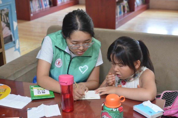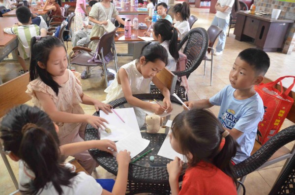 (圖為志愿者在幫助小朋友們完善自己的故事 王一卓 攝)