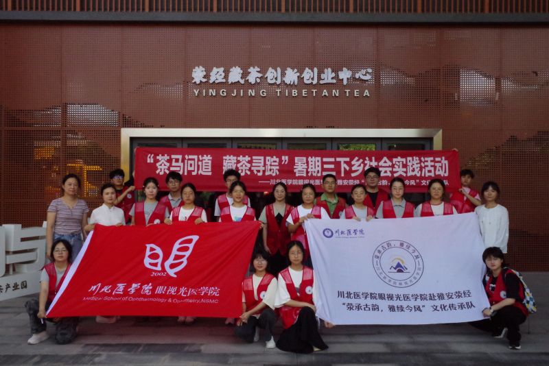 雅安藏茶是千年文化瑰寶,見證川藏茶馬古道商貿往來與民族融合,承載深厚歷史底蘊與非遺技藝。為傳承文化根脈,深入了解雅安藏茶歷史淵源、非遺制茶技藝,推動傳統茶文化的保護與傳承。7月10日下午,川北醫學院眼視光醫學院三下鄉赴滎經“滎承古韻,雅續今風”文化傳承隊來到新添鎮藏茶協作園區,開展“ 茶馬問道,藏茶尋蹤”主題活動。