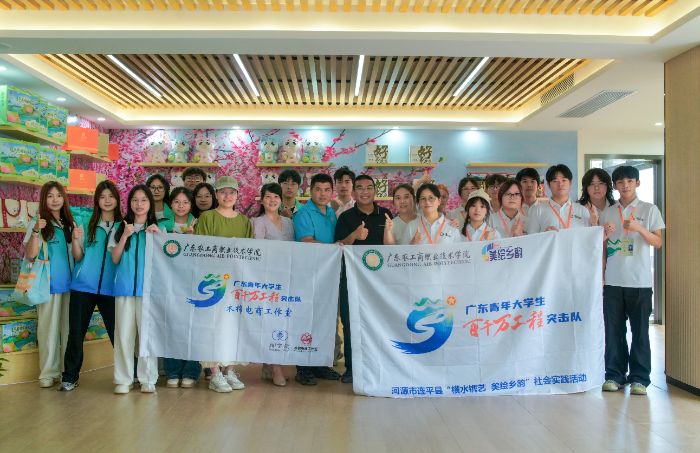 為進一步貫徹落實廣東省關于“百千萬工程”的決策部署,切實提升青年大學生實地調查研究能力,激發參與基層改革創新探索的熱情。2025年7月13日,廣東農工商職業技術學院藝術與設計學院“橫水鐫藝,美繪鄉韻”百千萬工程突擊隊一行12人走進河源市連平縣茶產業服務中心進行參觀,在一片清香中開啟了關于連平高山茶的深度研學之旅,更意外收獲了與同校隊伍的驚喜相逢。