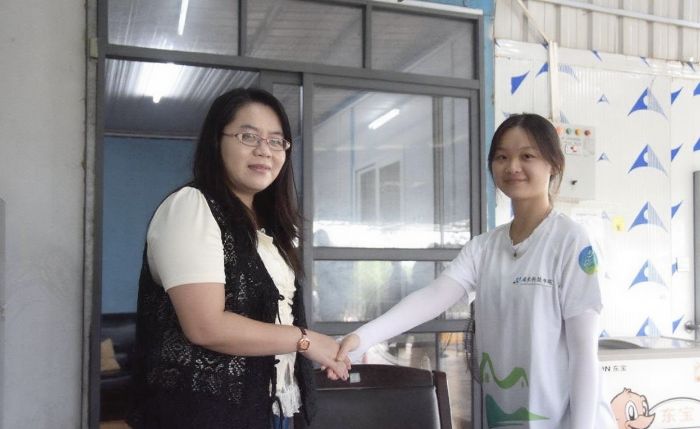 圖為突擊隊隊長與農產品質量檢測中心辦事員的合照(張鐘寧攝)
