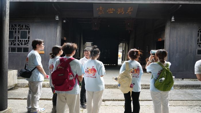 龍潭古鎮的歷史景深中,王家大院是不可忽視的存在。這座由清代舉人王生泰修建的宅邸,不僅是地主宅院的建筑典范,更見證了中國近代史上的風云變幻——這里曾是中國同盟會會員、孫中山總統府秘書王勃山的居所,也是瞿秋白夫人王劍虹的成長之地。實踐團成員駐足于精美的木雕回廊間,西院繡花樓的鏤空窗欞、東院木柱式四角天井的精巧布局,展現著巴蜀建筑與湘楚文化的交融之美。