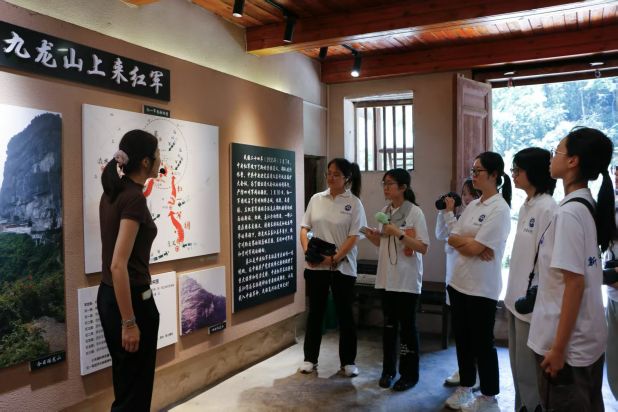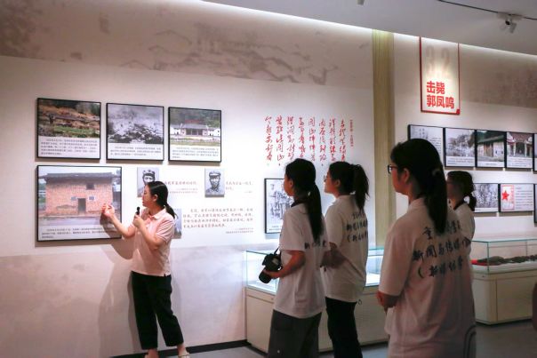 圖為講解員高夢向實踐團隊們介紹紀念館 攝|劉夢鈴
