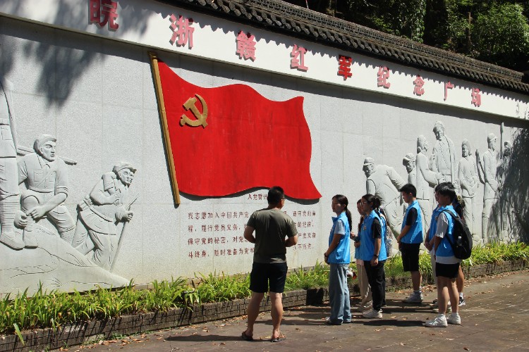 圖為實(shí)踐隊(duì)成員參觀皖浙贛紅軍紀(jì)念廣場(chǎng)