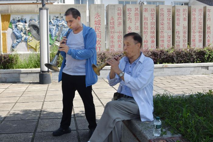 。▓D為劉道榮與后輩傳承人合奏 踐行團(tuán)通訊員攝)