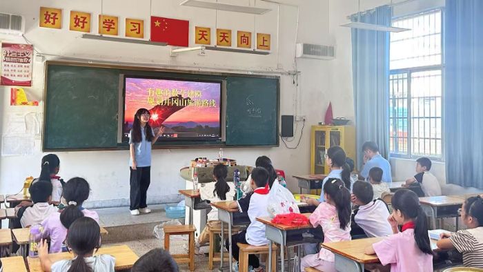 實踐團與井岡山毛澤東紅軍學校的孩子們進行成果展示 葉健偉攝