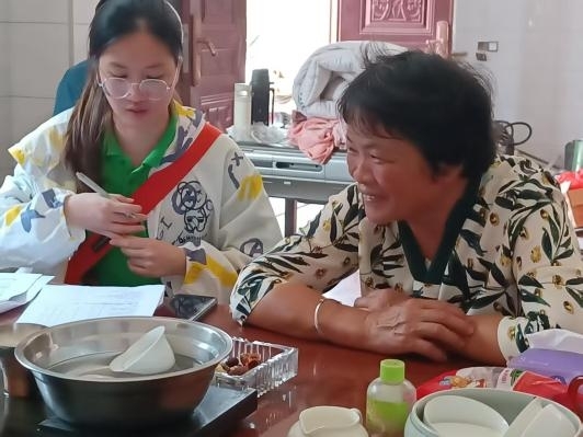 圖為實踐隊隊員正在對老年村民進行問卷調查 葉兵捷供圖