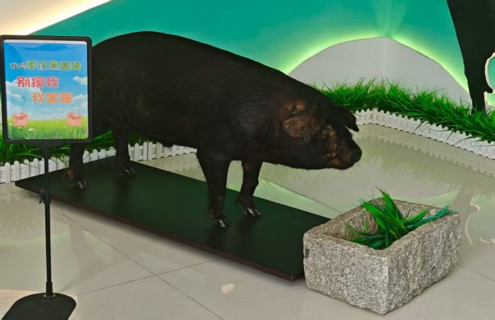 走到棗莊黑蓋豬養殖文化區,剛踏進企業文化走廊,門口陳列的兩具黑蓋豬標本就吸引了 “熒偵探” 實踐團所有人的目光,黑亮的鬃毛、結實的身板,連眼神都透著股機靈勁兒,讓實踐團成員一下子就對這種本地特色豬產生了濃厚興趣。負責人介紹,棗莊黑蓋豬是魯南地區的稀有優良品種,肉質又嫩又彈,還帶著醇厚的脂香,為了保住這獨特的風味,公司專門建了標準化養殖基地,采用 “林下放養 + 天然飼料” 的生態模式,讓黑蓋豬在青山綠水間自然生長,“從選種到出欄,每個環節都全程把控,就是要保證每一頭黑蓋豬都能達到最好的品質”。這讓團隊成員深受啟發,作為專注熒光探針檢測肉品腐敗程度的團隊,實踐團成員意識到福藤從養殖源頭把控品質的做法,正是肉品安全的第一道防線,而自己研發的技術可以作為重要補充,通過快速檢測肉品腐敗程度,守住后續的品質關。