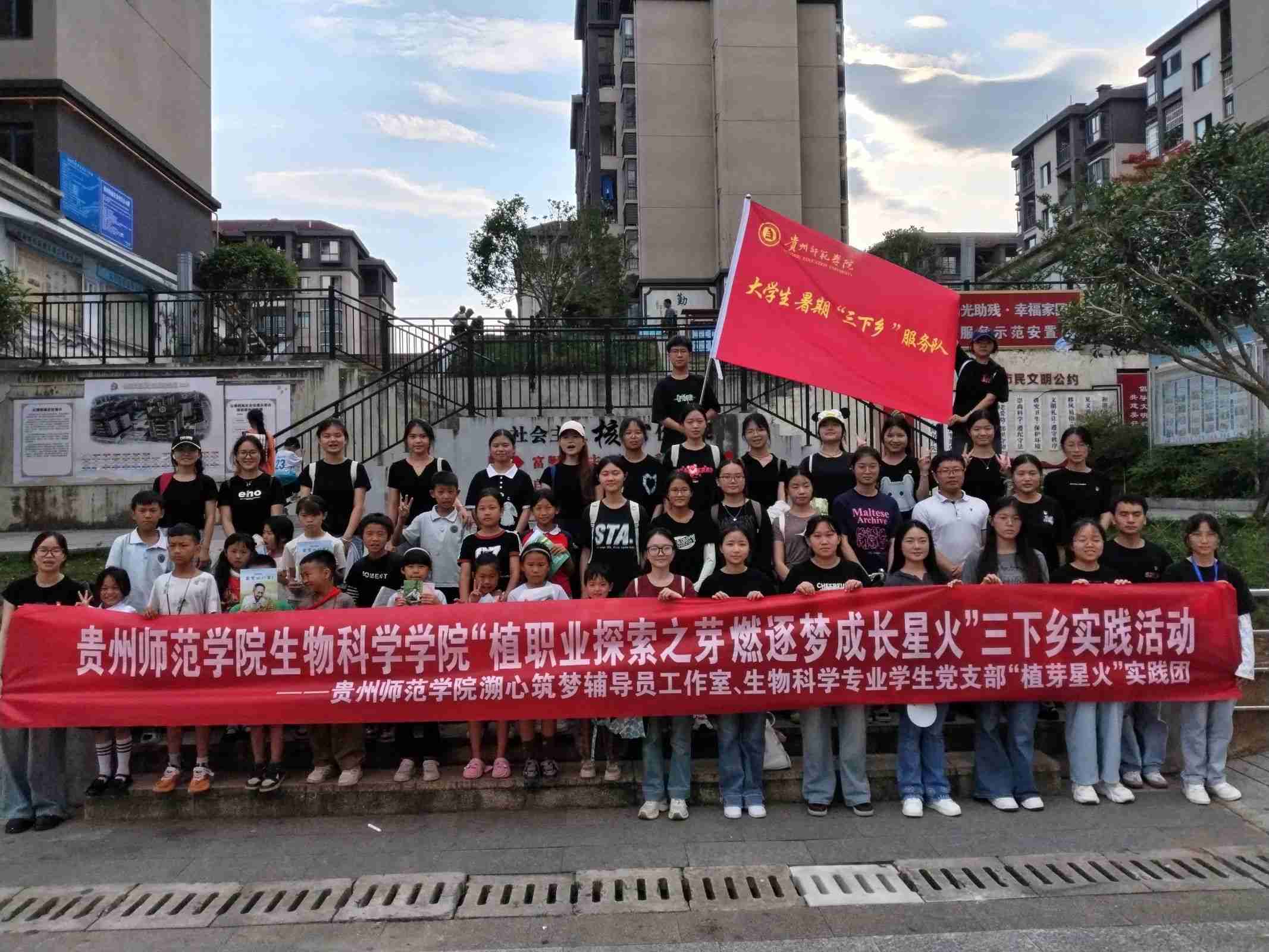 在國家全面推進鄉村振興戰略,聚焦未成年人尤其是困境兒童成長關愛的時代背景教育幫扶行動正如火如荼地在烏當區羊昌鎮黃連村和東風鎮云錦尚城社區展開,以教育為筆,青春為墨,在這兩個地方悄然繪制出一幅幅育人的新篇章。貴州師范學院“溯心筑夢”輔導員工作室聯合生物科學學院生物科學專業學生黨支部一行37人,于7月6日至7月12日開展為期7天的暑期“三下鄉”實踐活動,實踐活動中的“植芽未來”教育幫扶營正式啟動。“植芽未來”主要以“科學家精神+生物實驗探究”“生涯 + 生命”“托管+陪伴”三組育人關鍵詞,引導鄉村青少年以科技強國、“小我融入大我”踐行愛國情懷,為鄉村青少年成長賦能,書寫“教育振興”助力鄉村振興的生動實踐,筑牢鄉村“人才振興”根基。