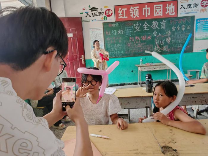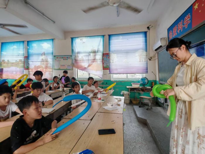 圖二:常芳瑜老師指導學生用氣球制作蝴蝶結