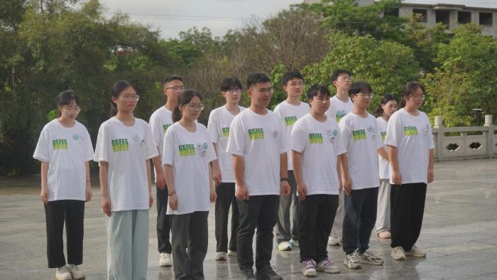 活動中,實踐團成員在講解員的深情講述和引領下,參觀崇左革命烈士陵園。當行進至巍峨聳立的革命烈士紀念碑前,全體成員莊嚴肅穆,集體默哀三分鐘。