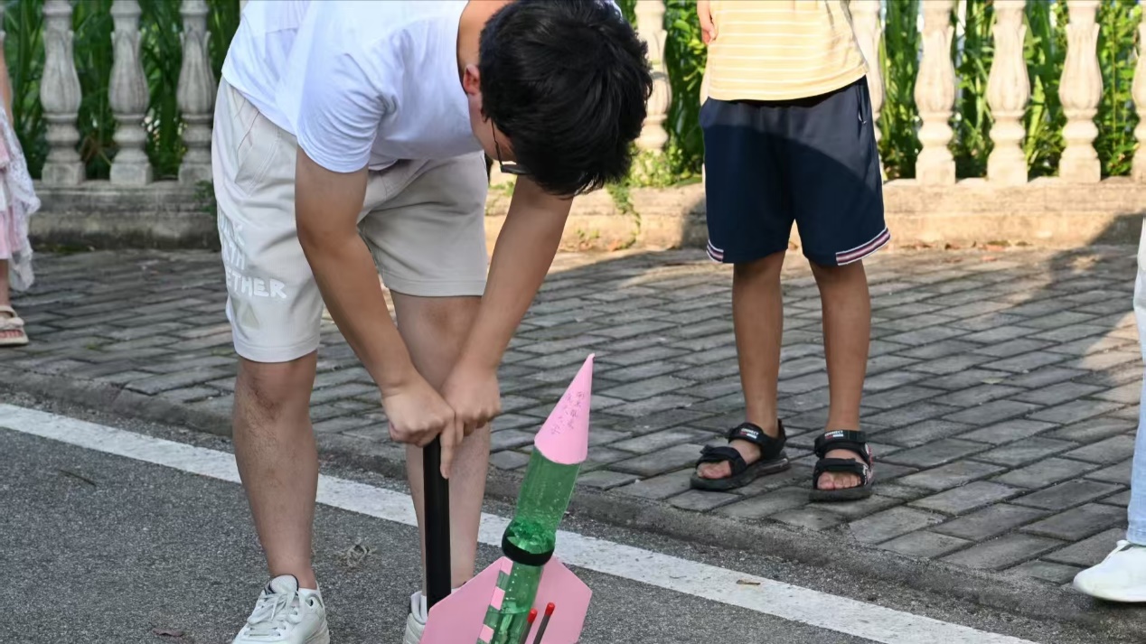妙手拼裝,騰空逐夢(mèng) 三航課程不僅有科普知識(shí),也給孩子們提供了親身體驗(yàn)的機(jī)會(huì),孩子們對(duì)吳通老師的水火箭課程期待已久。老師先通過一個(gè)短片,為孩子們展示了我國(guó)航天事業(yè)的發(fā)展,再化繁為簡(jiǎn),向孩子們說明了本次水火箭的基本原理。在制作過程中,孩子們也遇到了不少挑戰(zhàn),有的結(jié)構(gòu)組裝不合理,有的細(xì)節(jié)處理不到位。老師認(rèn)真指導(dǎo),指出問題所在,對(duì)于低年級(jí)的小朋友,老師耐心地給予幫助。隨著水火箭陸陸續(xù)續(xù)升空,孩子們樸素的航天夢(mèng)也跟隨火箭飛翔起來,這一刻,支教團(tuán)成員對(duì)孩子們的三航啟蒙得到了升華。