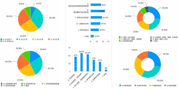 統(tǒng)計分析顯示:從需求來看,58.5%的游客期待“更完善的衛(wèi)生間設(shè)施”,43%希望增設(shè)“休息座椅和遮陽設(shè)施”,反映出景區(qū)基礎(chǔ)服務(wù)仍有優(yōu)化空間;從環(huán)保問題而言,“垃圾清理不及時”“環(huán)保宣傳不足”占比居前,提示需加強生態(tài)管理;從信息來源看,53%的游客通過“社交媒體”了解景區(qū),印證了“網(wǎng)紅打卡點優(yōu)化”的必要性。