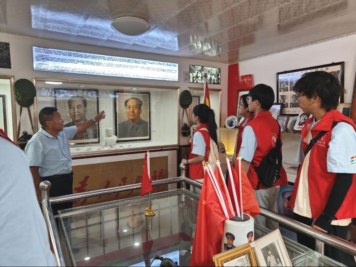 篇章四:紅館聆聽初心語薪火相傳使命擔 “一間紅館藏歲月,滿腔赤誠映初心。”7月11日下午,實踐團走進當?shù)氐奈渖酱寮t色展覽館,雖場館不大,卻陳列著承載革命記憶的老照片、舊物件,靜靜訴說著這片土地的紅色故事。武時備館長用沙啞卻充滿力量的聲音,逐件講解展品背后的英雄事跡——從抗戰(zhàn)時期的支前故事到新時代的鄉(xiāng)村變遷,從革命先輩的奮斗歷程到當代黨員的堅守奉獻。