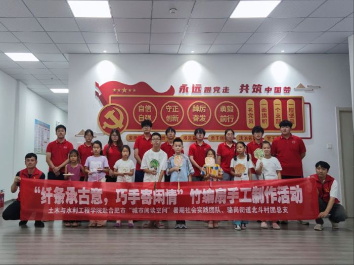 為深入學習貫徹習近平總書記關于非物質文化遺產保護和鄉村振興的重要講話精神,增強青少年對中華優秀傳統文化的認同感與傳承意識,豐富農村兒童暑期生活,2025年7月14日,合肥工業大學土木與水利工程學院“城市閱讀空間”暑期社會實踐團隊走進合肥市包河區北斗村,開展“傳承非遺童心筑夢”主題實踐活動。此次活動以竹編扇手工體驗和趣味積木塔游戲為載體,在孩子們的歡笑聲中,將傳統技藝的溫度與青春支教的責任一同送入鄉村兒童的心中。