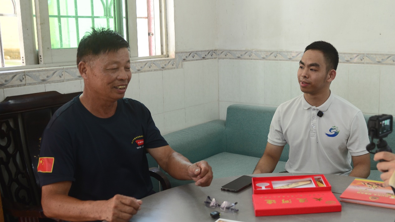 革命信仰:譚慶登寄語青年奮斗未來隨后,實踐隊來到了譚慶登同志家中。譚慶登同志出生于 1956 年,今年 69 歲,是二等功臣。譚慶登同志向隊員們講述了戰爭中的艱苦生活,當時的糧食大多是壓縮餅干,但戰士們從未有過怨言。他始終堅信新中國是靠無數革命先烈浴血奮戰打出來的,是在毛澤東同志的帶領下建立起來的。臨別時,譚慶登同志語重心長地對實踐隊隊員說:“要相信中國共產黨,新時代是屬于你們青年的,你們要努力奮斗,創造更美好的未來。”