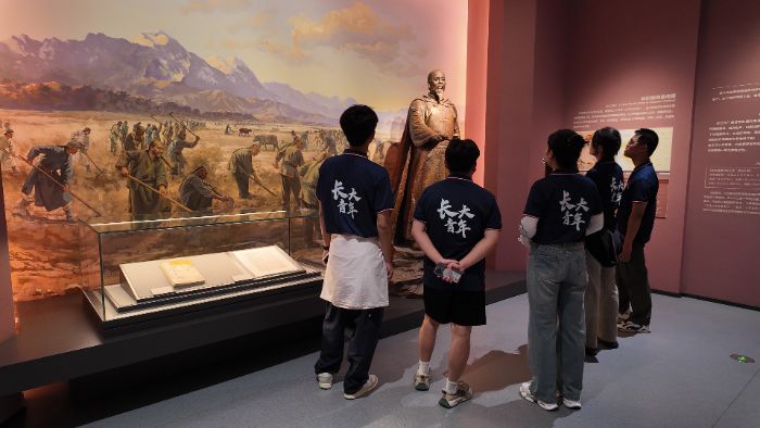 圖為團(tuán)隊(duì)成員學(xué)習(xí)參觀林則徐開勘墾南疆事跡。湯皓添攝