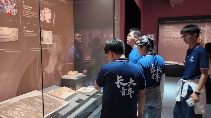 圖為團(tuán)隊(duì)成員參觀古絲綢之路相關(guān)文物。湯皓添攝