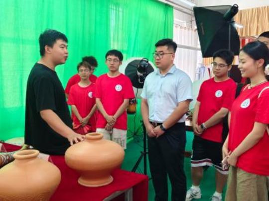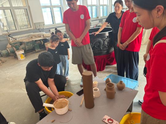 02 隨后志愿者團隊開啟非遺深度體驗之旅。先是投身于黑陶制作,觸摸細膩陶土,在匠人指導下嘗試拉坯、雕刻,感受黑陶“薄如紙、亮如漆”的獨特質感,于泥土蛻變中,探尋非遺文化的厚重底蘊,堅定傳承創新的使命。