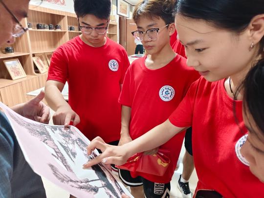 03 隨后,邂逅山花剪紙藝術。非遺傳承人示范剪、刻、染技法,隊員們專注學習,紅紙在指尖化作靈動圖案,體悟傳統技藝的精巧。