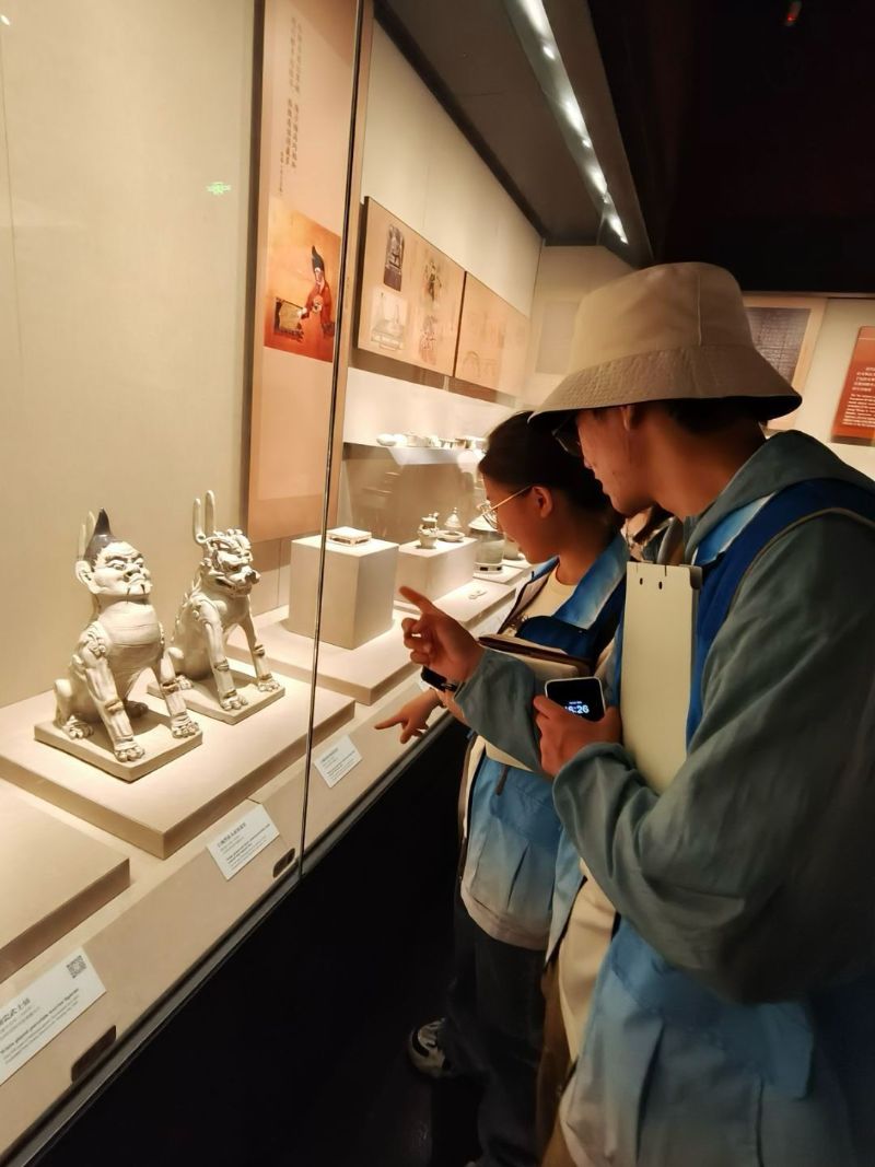 離開關林時,夕陽為古柏鍍上一層金邊。“古代中國靠的是‘書同文、車同軌、行同倫’的文化整合實現統一。”文化遺產專業的隊員程雅雯的話引發了全場掌聲。實踐團成員們意識到,自己剛剛走過的,正是一場跨越五千年的“文化認證”之旅,中華文明用最柔軟的方式,完成了最堅韌的整合。不得不說的是,這種文化認同在洛陽博物館具象化呈現,北魏司馬金龍墓出土的胡人俑穿著漢式官服,唐代三彩載樂駱駝上的胡姬彈著琵琶,正是“胡人漢化”與“漢物胡風”的雙向塑造。