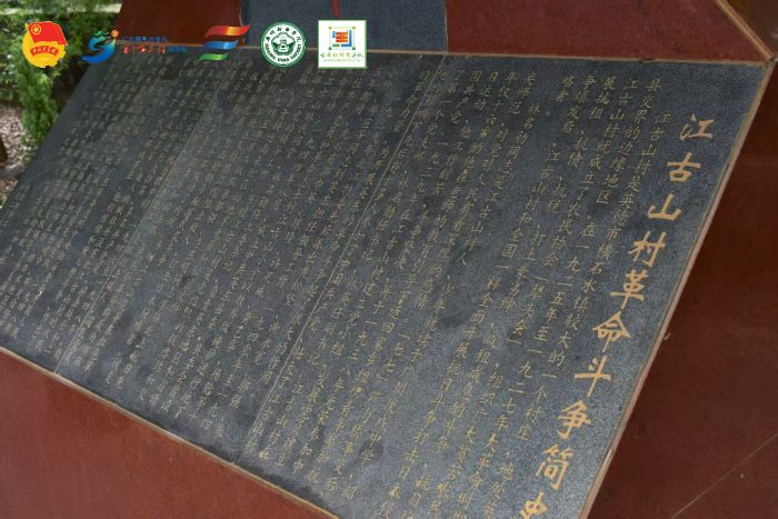 思源亭內(nèi)正面矗立著一座“人”字形紀(jì)念碑,碑上端刻有“革命歷史紀(jì)念碑”7個(gè)字,碑座長(zhǎng)1.8米、寬1.35米、高2.3米,碑座正面刻有“江古山村革命斗爭(zhēng)簡(jiǎn)史”;碑座后面刻有13位烈士芳名,他們分別是:林作湘、林作優(yōu)、林作亮、林作祈、林錦楊、林家俊、林錦章、林汝先、林寶琛、林名山、藍(lán)應(yīng)聰、黃錦中、林慶勛。思源亭后邊和左右均為1米多高的圍墻。
