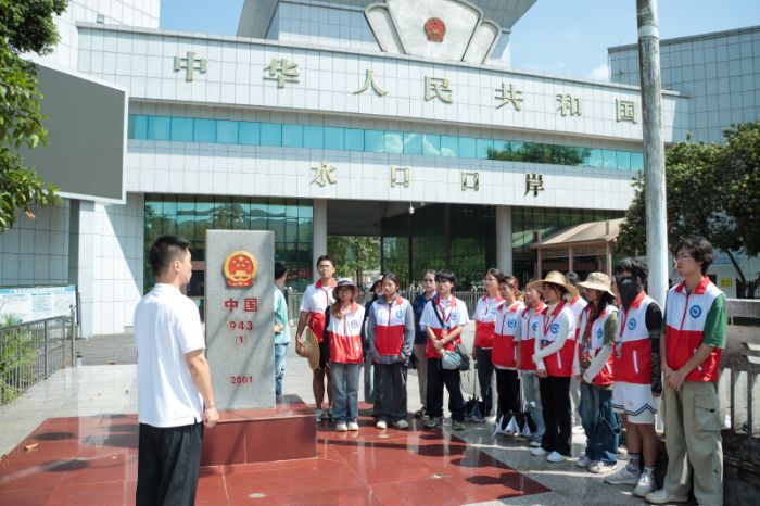 國安教育強擔當,藝傳精神筑防線 7月11日,實踐團開展國家安全主題團日活動。上午,實踐團師生來到水口鎮合平村中越邊境界碑處,合平村駐村第一書記農書記為師生們詳細講述了界碑背后的歷史故事。實踐團成員駐足凝視界碑,認真聆聽先輩們衛國戍邊的事跡,深刻體會到“寸土不讓”的家國情懷。下午,實踐團在水口口岸開展“邊疆安全·青年擔當”主題團課,由南寧學院藝術與設計學院團委書記覃兆剛老師主講。課上,覃老師結合邊疆實際,講解了反走私、反間諜等國家安全知識,通過真實案例警示大家時刻繃緊國家安全之弦。