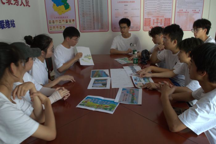 圖為“青行”實踐團成員在討論墻繪設計(黃福柱供圖)
