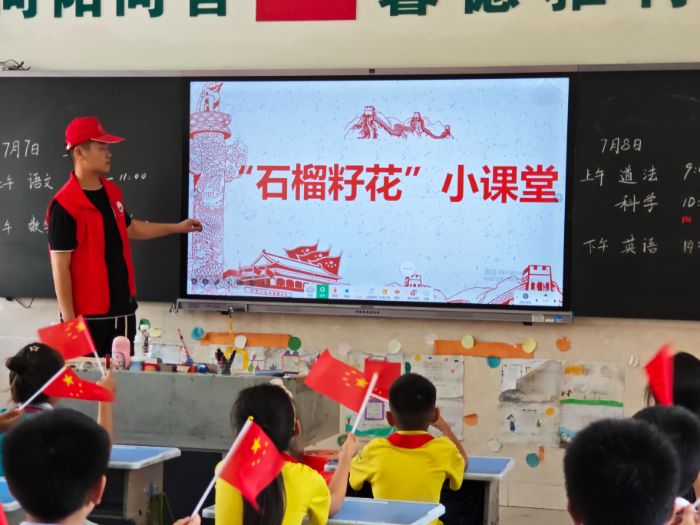 圖為實踐團走進荔波二小,開展習近平總書記考察肇興侗寨時的重要講話精神,“五旗五徽五認同”進校園,防溺水等宣講活動 曾芳梅攝