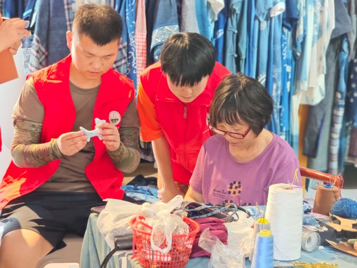 圖為實踐團成員在永濟泉社區親自感受手工刺繡、蠟染、扎染等傳統工藝的魅力并開展“四對關系”主題宣講 阿入爾者攝