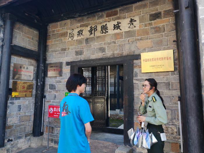 圖為實踐團成員聆聽講解員對赤城縣郵政局的介紹 汪凌攝