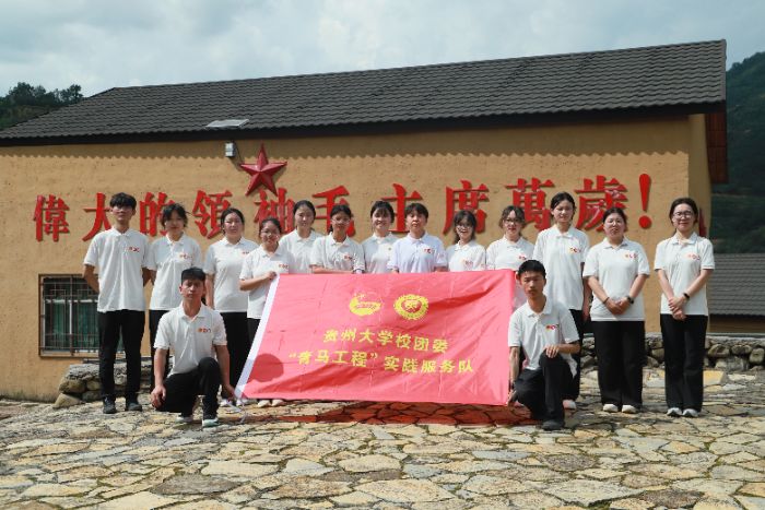 團(tuán)委網(wǎng)站訊(記者徐再楊世英報道|攝影李翊萌陳厚文)“五星紅旗迎風(fēng)飄揚(yáng),勝利歌聲多么響亮……”《歌唱祖國》的旋律響徹在板袍村上方。7月14日,貴州大學(xué)校團(tuán)委“青馬工程”實踐服務(wù)隊來到貴州省安順市鎮(zhèn)寧布依族苗族自治縣,在貴州紅色美麗村莊——板袍村,開展實踐活動,通過參觀紅色遺址、聆聽革命故事、重溫長征歷程,感悟紅色精神,汲取奮進(jìn)力量。