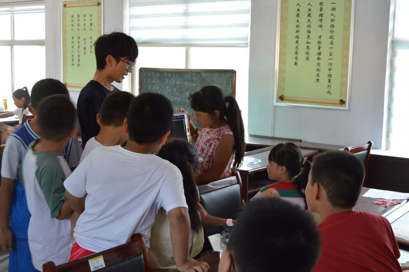 圖為支教隊成員帶領學生進行初步編程體驗。李健哲 供圖