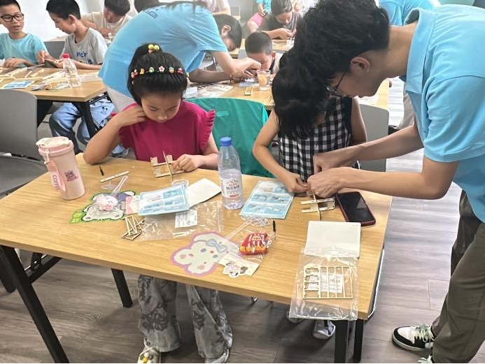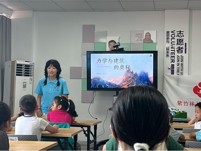 社區科普:趣味互動傳遞科學薪火 7月16日,實踐團隊前往南京本地的紫竹林社區,面向小學生開展古建筑力學科普宣講活動。通過精心設計的有獎問答環節,充分調動了孩子們的學習積極性,現場氣氛十分活躍。活動的亮點是親手拼接橋梁模型的互動環節,孩子們在團隊成員的指導下,通過動手實踐深入了解建筑力學結構的基本原理。從簡單的梁式結構到復雜的拱橋設計,每一個拼接過程都讓孩子們對力學知識有了更加直觀的認識。在模型搭建過程中,團隊成員耐心講解承重分布、結構穩定性等基礎概念,讓抽象的力學原理變得具體可感。