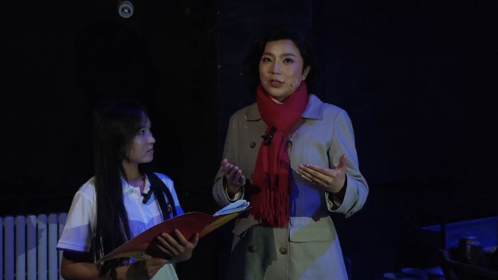 隨后,實踐團成員現場觀看了大型歌劇《木卡姆戀歌——萬桐書》,該劇通過一座維吾爾木卡姆藝術數字博物館的開放,生動再現萬桐書當年的艱辛歷程。期間,團隊成員古麗米熱·艾山對國家二級演員賈倩倩等參演該劇的老師進行了采訪。老師們分享了在木卡姆藝術表演、傳承過程中的心得體會,以及對木卡姆藝術未來發展的思考與展望。