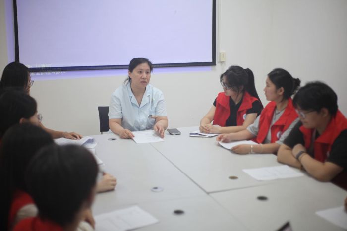 隨后,實(shí)踐團(tuán)成員代表向負(fù)責(zé)人闡述了此次實(shí)踐的大致內(nèi)容,即參觀代表科室,了解各個科室的大致工作內(nèi)容,分析醫(yī)院特色并通過調(diào)查問卷的形式了解醫(yī)院亟待解決的醫(yī)療問題,然后提出可行的解決建議和解決方案。
