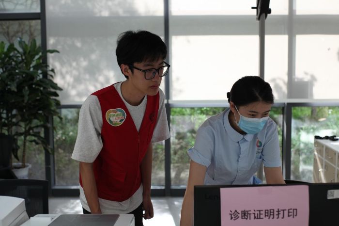 下一階段,負(fù)責(zé)人帶領(lǐng)成員們親身體驗(yàn)醫(yī)院的部分設(shè)施。如問診證明的開發(fā),問診機(jī)器人的使用,問診地圖的使用方法等。成員們認(rèn)真聽講,全身心感受醫(yī)療與科技碰撞所散發(fā)出的魅力。
