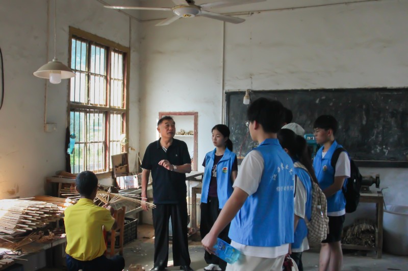 圖為戴根盛師傅向實踐隊員講解傘骨制作過程(供圖:施邵鵬)