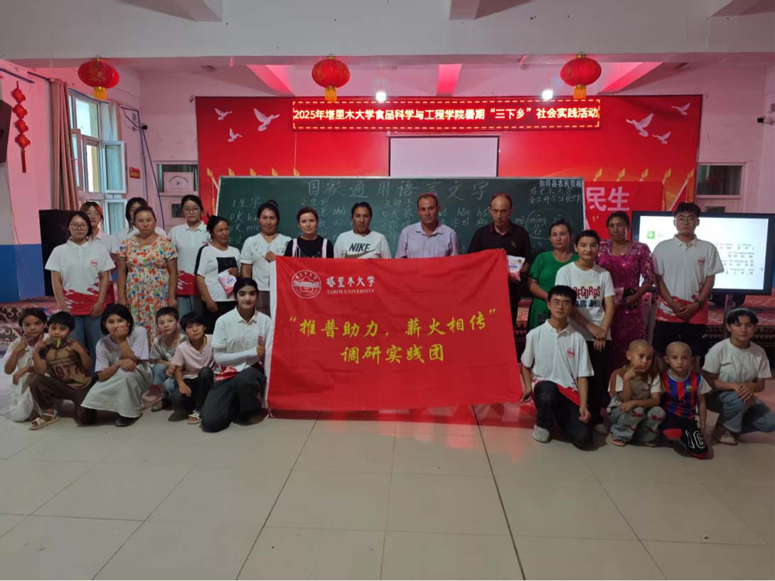 2025 年 7 月 5 日上午,塔里木大學(xué)食品科學(xué)與工程學(xué)院 “推普助力,薪火相傳” 暑假三下鄉(xiāng)調(diào)研實(shí)踐團(tuán),帶著對(duì)南疆鄉(xiāng)村教育的熾熱情懷,走進(jìn)鄉(xiāng)村,以一場(chǎng)別開生面的普通話宣傳活動(dòng),架起語言文化傳承的橋梁。