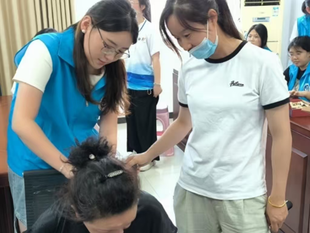 活動當天,梁園鎮組織的義診場地人頭攢動,實踐團搭建的臨時服務臺被村民們團團圍住。“阿姨,您平時是不是總覺得肩膀酸?我給您試試穴位按摩,能緩解不少。”“大爺,這是我們特制的菊花枸杞茶,夏天喝清熱明目,您嘗嘗。”同學們熱情的招呼聲此起彼伏,嫻熟的服務讓村民們贊不絕口。