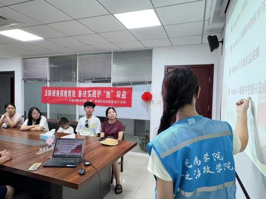 為聚焦當代青年婚育困惑,引導青年樹立理性平等的新型婚育觀念,2025年暑假期間,無錫學院“她”權益社會實踐普法小分隊圍繞“法律視角下青年婚育觀研究”主題,立足青年群體實際需求,以法律賦能為核心,將政策導向與實踐探索相結合,先后深入無錫市婦聯、蘇州蘇相律師事務所、江蘇眾勛律師事務所、蘇州市國香園社區、圓融商場CP心動研究所及無錫市三陽廣場等地開展活動,通過系統調研、普法宣傳等舉措,力求破除青年婚育焦慮,為解決當代青年婚育困境貢獻力量。